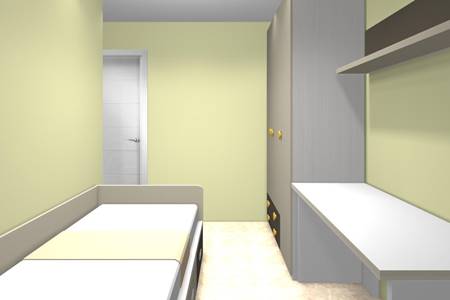 - Armario en la pared superior o en la esquina, de manera que se pueda acceder fácilmente a él sin entorpecer el espacio de la cama y el escritorio.